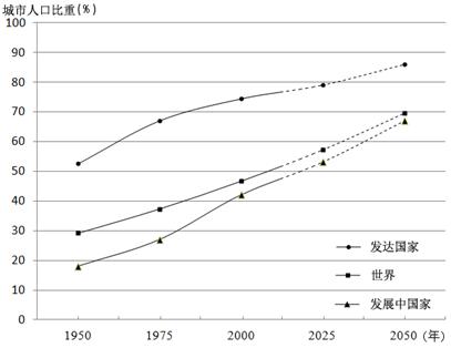 读图,比较1950年以后发展中国家与发达国家城市化进程的异同点。(10分)