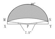 1、综合题 该图为部分30°N的纬线,P为北极点,M、N分别为晨线和昏线与30°N的纬线的交点,∠MPX和∠NPY为7.5°,PY为0°经线。完成下列各题。