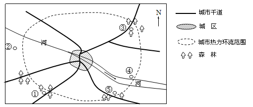 (1)若该城市需布局一大型火力发电厂,其最佳区位是图中①②③④⑤中的那一地?请说明理由。(3分)