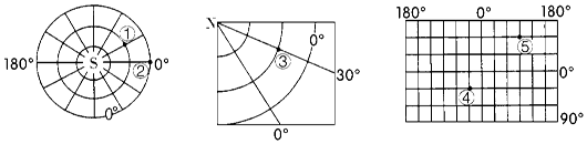 1.①~⑤各地,地理坐标相同的是2.关于图中各地的判断,正确的是