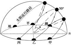 1.根据图中当地太阳视运动的特点,可判断该地位于2.甲、乙、丙中,表示二分日的是