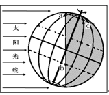 4、单选题 该图表示全球处在同一日期时,曲线ABC上的太阳高度为0°,请读图后完成下列小题。