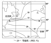 【小题2】甲处位于中低纬度大陆西岸,沿岸有加那利寒流经过,洋流对沿岸气候有降温、减湿作用,②、④对,B对。