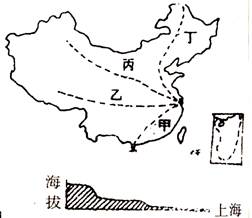 1、单选题 家住上海的王小华利用暑假期间浏览祖国的大好河山,他设计的浏览线路如下图所示。据此回答下题: