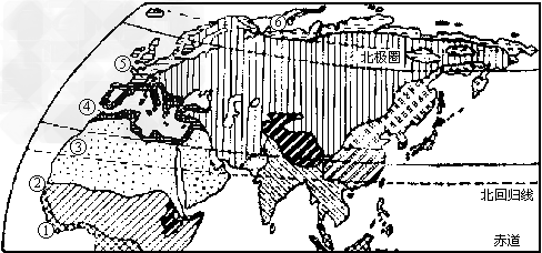 (1)将图中①、②、③、④、⑤、⑥所代表的气候类型名称,分别填写在相应的空格: