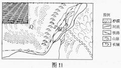 1、单选题 图是我国西部某地区略图,图中左上方所示为当地铁路沿线的草方格沙障。读图回答问题。