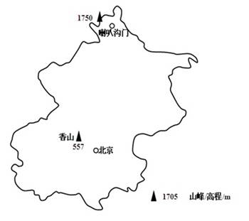 4、单选题 我国天然白桦林主要分布在东北地区。北京喇叭沟门口有一片天然白桦林。图示意喇叭沟门在北京的位置。据此完成题。
