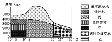 5、单选题 读“安第斯山西坡不同地带垂直景观略图”,完成下列问题。