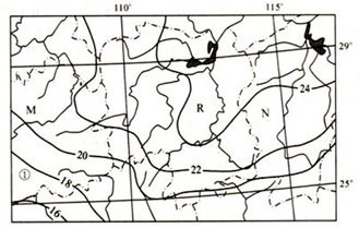 (1)分析①地气温年较差小于图中同纬度地区的原因。(4分)