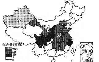 3、单选题 下图为我国2008年某经济作物年产量分布。读图回答26-28题。