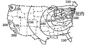 2、单选题 人口潜力是对既定人群相对于某一点的接近程度或通达性的测试。读“美国本土人口潜力平面图”,回答题。
