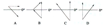 5、单选题 下图中的虚线是水平运动物体的假设方向,实线是其偏转方向(提示:O°线为赤道),则实际偏转正确的是( )