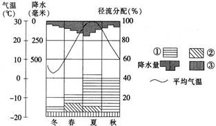 本题解析:小题1:图中①所示的补给类型与降水量较大的月份对应,故为降水补给。