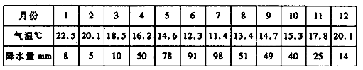 小题1:上图示意的四个城市中,某气候特点与下表统计数据相符的是
