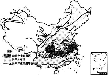1、单选题 下图为“我国油菜分布及开花日期等值线图”。读图回答1~2题。