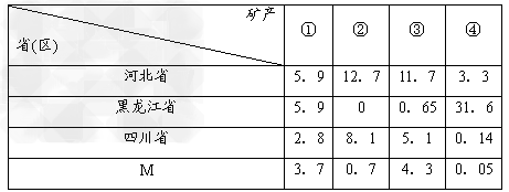 1.表中①、②、③、④代表的矿产依次是