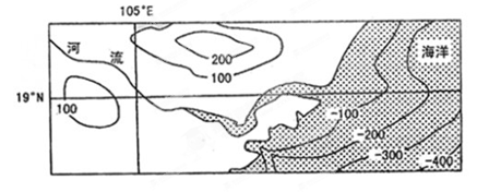 小题1:河口附近等深线向海洋方向凸出,即等值线“凸低为高”,判断河口附近的水深较周边地区浅,故主要从河口地区泥沙淤积角度分析。