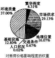 5、单选题 下图是上海市某区域住房价格受各因素的影响权重示意图。读图回答1—2题。