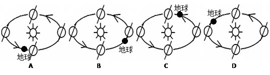 小题1:当大会开幕时,下列四图能正确反映地球在公转轨道中位置的是?(?)