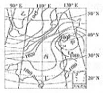 5、单选题 2012年3月30日受冷空气活动影响,我国北方地区出现了沙尘天气。右图是某时刻地面气压(帕)分布图。