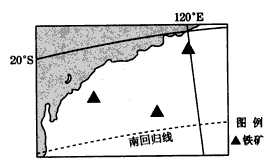 5、单选题 目前我国每年需要通过远洋货轮进口大量铁矿石。下图所示区域是我国重要的铁矿石进口地。7月份将该地铁矿石运往上海,货轮在航行过程中总体上