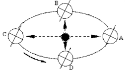 (1)7月1日,地球位置最靠近上图中 位置附近,此时全球昼夜分布大致与下图中的 (填字母)图相符合。(2分)