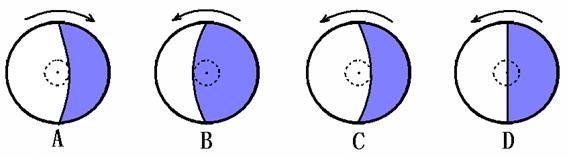 3、填空题 读“太阳光照图”(阴影表示黑夜,非阴影表示白天),完成下列问题。(每空2分,20分)