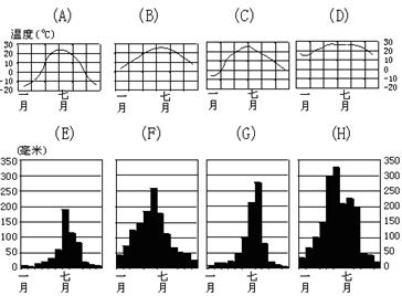 (1)B气温曲线图对应城市名称为      ,G降水柱状图对应城市名称为      。(4分)