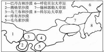 4、单选题 读“我国某区域沙漠沙地和草原分布示意图”,完成下面问题。