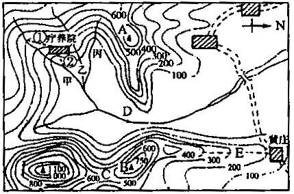 (5)若将小河甲的水引向疗养院,图中两条规划路线①②中,比较合理的是_______,原因是________________________________________。