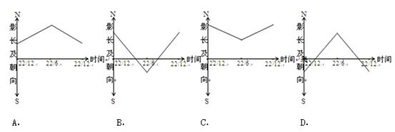 小题2:下列图中,能正确表示天安门广场旗杆正午杆影在一年中的影长及朝向变化的是
