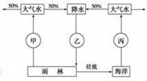 小题1:热带雨林对全球的水循环和水平衡具有重要的作用,其空气中的水汽有近一半来自自身的蒸发和蒸腾作用。结合图示甲表示雨林自身的蒸发和蒸腾;丙表示海洋水汽的增发;乙表示大气降水。