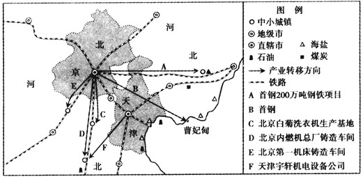 (4)材料二为所示地区产业转移示意图,分析该地区产业转移的主要特征。