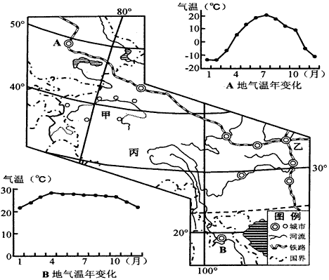 (4)用所学地理知识,分析丙地所在的大地形区对我国夏季降水的影响。