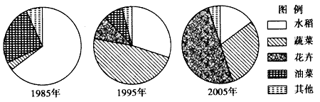 1、单选题  张某承包了0.5 公顷耕地,种植结构变化如下图。当地1月平均气温3℃。完成1~2题。