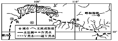 2、单选题 读黄河干支流部分河段水质状况分布图,判断1—2题。