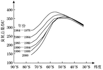2、单选题 臭氧层保护是当今全球最重要的环保议题之一。下图反映了9月份30°S-80°S平流层臭氧总量多年变化状况。读图,回答1~2题。