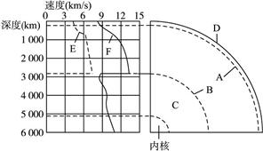 图1-4-2地震波的传播速度与地球的内部圈层的划分