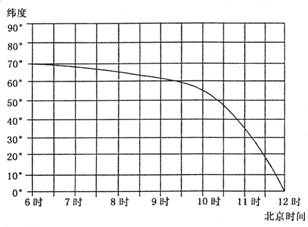 4、综合题 下图是北半球某日某经线日出时间随纬度分布图,读图回答下面试题。