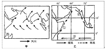 (2)请说明乙图为何海域、何季节及其大洋环流分布规律。(3分)