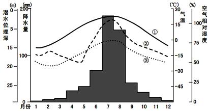 4、单选题 我国某地潜水位埋深与气象要素相关模式图,回答11~ 13题。
