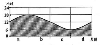 读图(北半球某地12个月内夜长季节变化示意图),完成下列各题