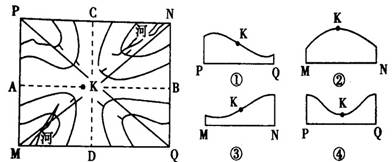 【小题1】为正确显示K地的地形起伏,沿图中MN、PQ线作地形剖面图,表示K点位置的正确组合是( )
