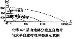 (2)同一自然带南坡分布的海拔比北坡高;(2分)南坡缺失山地针叶林带(北坡自然带谱较南坡复杂)。(2分)南(北)坡是向阳(阴)坡,热量条件较好(差);(2分)北(南)坡是迎(背)风坡,水分条件较好(差)。(2分)