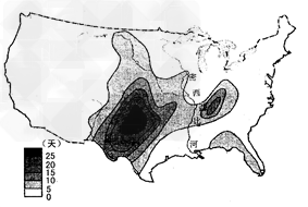 4、单选题  下图是美国20世纪30年代某灾害分布示意图,完成下面3题。