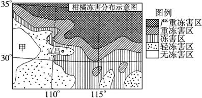 (1)指出图示区域柑橘冻害分布特点,分析甲地无冻害的原因。