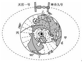 小题1:在神舟九号与天宫一号首次实现人工对接时,图中表示地球表面晨线的是 ( )。