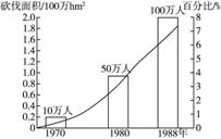 2、综合题 读“亚马孙河流域朗多尼亚地区人口增长与雨林砍伐关系”图,完成下列问题:
