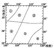 1.根据东经120,北纬40大概是北京的位置,105°E,30°N大约是重庆的位置;查地图大概了解我国各地区的经纬度位置判断:③就是华北平原,②是黄土高原,①是西北黄土高原西延,④是祖国西南,⑤是南方,⑥是东南沿海地区;故选D项。