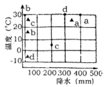 1、上图中a,b,c,d是四个地点1月(▲)和7月(●)气温及降水情况示意图,其中与甲河流域气候类
